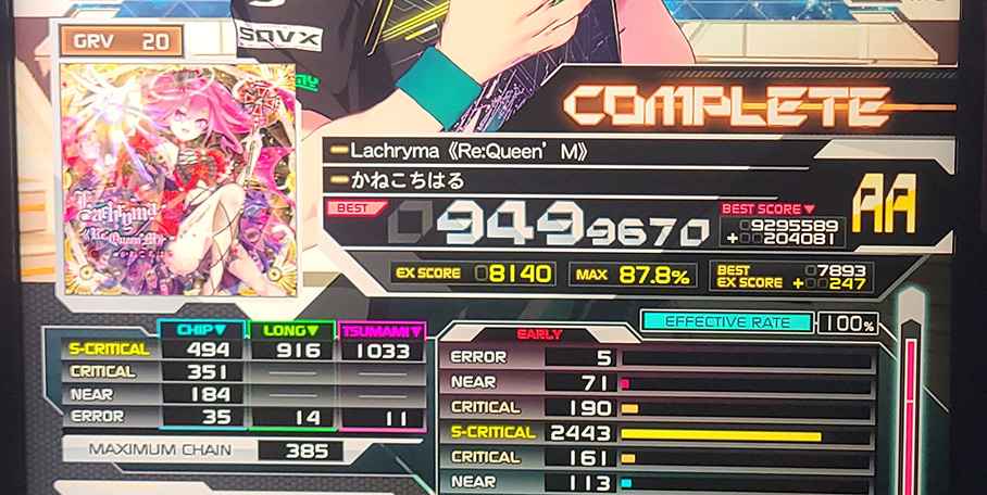 9880k。最後のFXロング+BTトリルが安定しない。そのうちS出そうだけど悩ましい曲。