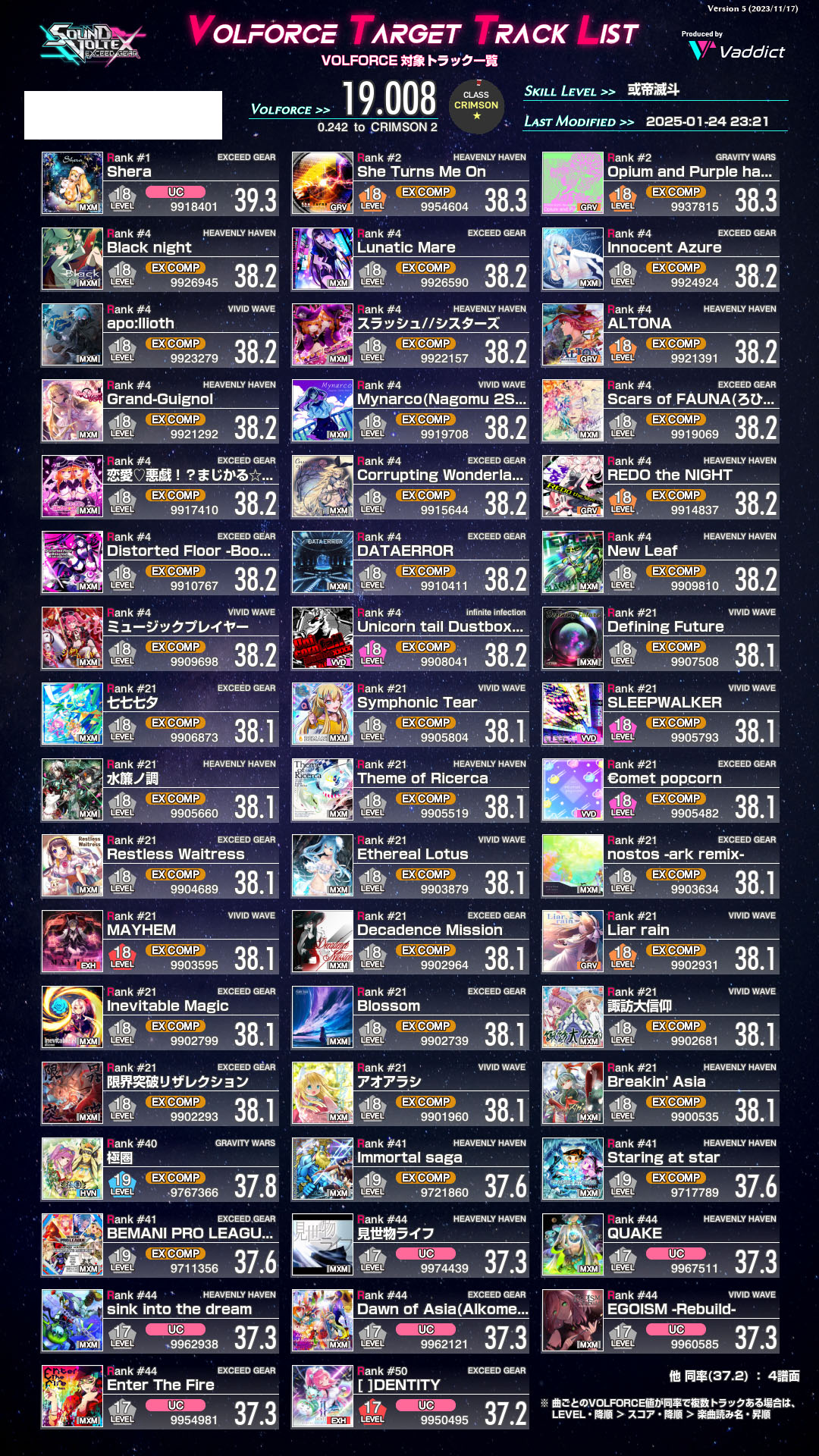 VF対象曲の詳細 (タップで拡大) ※Vaddictを利用させてもらいました。